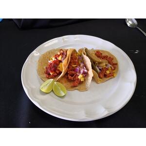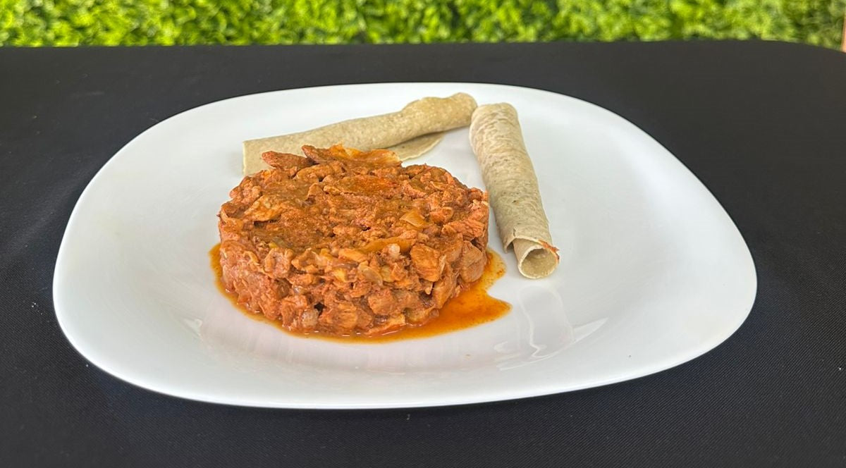 CARNE DE CERDO ADOBADA ASADA AL CARBON, Viene empacado al vacío, peso 500 g. de carne, 10 Tortillas de Maíz hechas a mano, piña, cebolla y una salsa martajada roja picosa ¡ESTAN DE PRIMERA! Promedio 10 tacos por porción.
